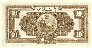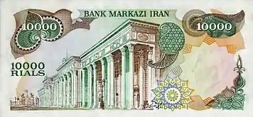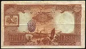 نمادهای به کار رفته در اسکناسها در دوره شاهنشاهی پهلوی افزون بر نماد شیر و خورشید و نگاره پادشاه، نگارههایی از تخت جمشید، آرامگاه دانیال نبی، کوه دماوند، رشته کوههای البرز، کاخ تچر، پل قدیم دزفول، طاق بستان، سنگنگاره پیشکش آوران، نماد نوروز زرتشتیان، مهر سلطنتی داریوش کبیر، عالی قاپو، داریوش بزرگ، پل الله وردی خان، ا، پالایشگاه آبادان، ساختمان بانک ملی ایران، تونل و سد کوهرنگ، تاج پهلوی، آرامگاه حافظ، جام مارلیک، هتل رامسر، سد کرج، پل ورسک و … میباشد.