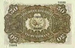 نمادهای استفاده شده در دوره سلسله قاجار علاوه بر عکس پادشاه تصویر شیر و خورشید و طرحهای مختلف بودهاست.