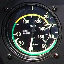 خط قرمز VNEیا سرعت غیر مجازرا نشان میدهد.این بیشترین سرعتی است که تحت هیچ شرایطی هواپیما نباید از آن تجاوز کند. خط قرمز پس از باند زرد قرار میگیرد که ناحیه خطراست و از VNO (حداکثر سرعت کروز)تاVNE میباشد. باند سبز از VS1 تاVNOمی باشد. VS1 سرعت توقف با لغزنده و اهرم فرود منقبض شدهاست. باند سفید از VSO تا VFEقرار دارد. VSOسرعت توقف با لغزنده افزوده شدهاست و VFE حداکثر سرعتی است که در آن صعود یا نزول توصیه شده است