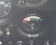 LRIیک ناحیهٔ 3 گانه از نمایش زرد- سفید- سبز است.در طول پرواز ناحیه سبز به خوبی بالای توقف است در جایی که کنترلها محکم میشود، زاویه حمله کم است، و پتانسیل بالاآمدن بال بی استفاده، زیاد است.ناحیه سفید نزدیک به توقف جایی که کنترل کردن پرواز راحتتر است زاویه حمله بالاست و پتانسیل بالا بردن بال استفاده نشده کم میشود . بالای ناحیه قرمز شروع به افت سرعت را تعیین میکند . شدت افت سرعت افزایش می یابد و قتی که ضربه عقربه عمیقتر در ناحیه قرمز، در طی پرواز کردن نمایشگر ذخیره پرتاب فشار دینامیکی را برای اقدام کردن استفاده میکند.عقربه ناحیه قرمز بالا نخواهد آمد تا اینکه توانایی کافی سرعت هواپیما برای پرواز در دسترس باشد.