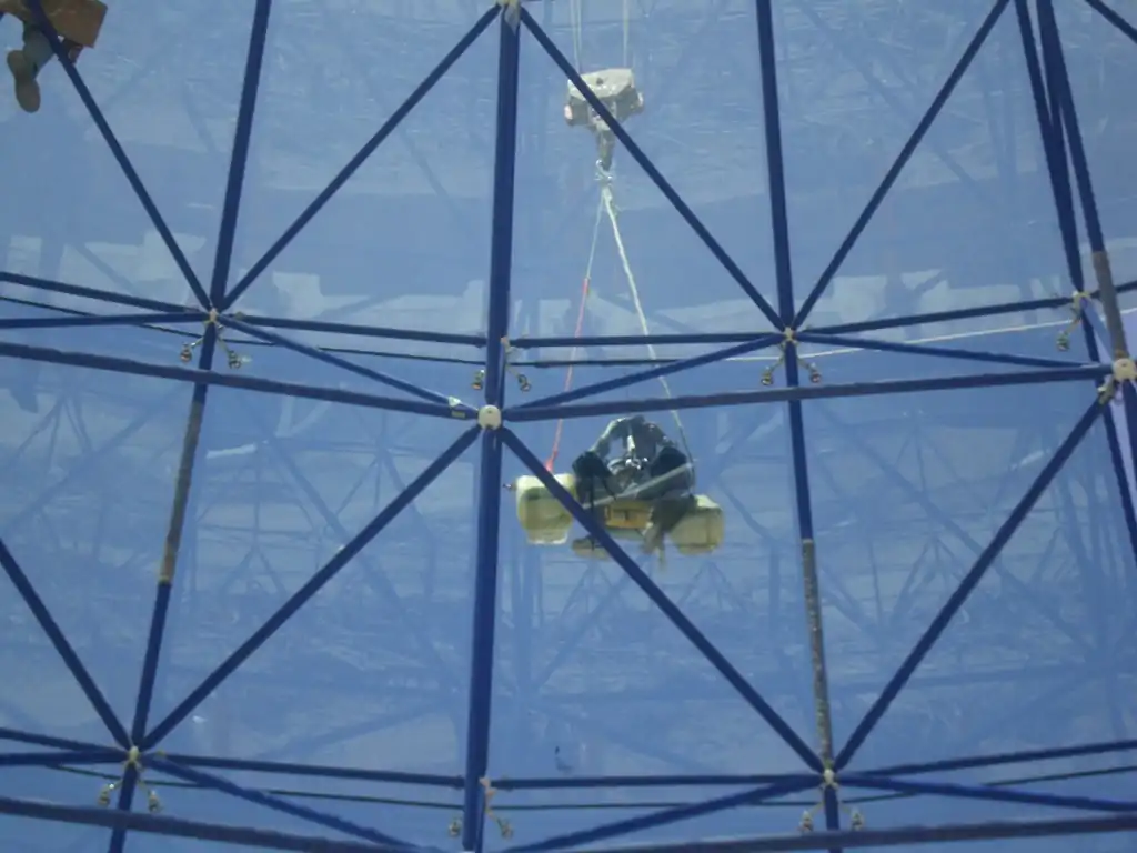 در این روش خرپا فلزی جهت تحمل بار مرده و بار دینامیکی طراحی شده و اسپایدرها با جوش یا پیچ بر روی این سازه نشسته و بار را منتقل میکنند. محاسبه خرپای اینچنینی بسیار ساده بوده و تولید اینگونه خرپا نیز به سرعت انجام میپذیرد. میتوان آن رارنگ پادرکوتینگ نمود و محاسبان ایرانی شناخت خوبی از عملکرد آن دارند.
