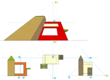 دید مورچه معمولاً با استفاده از پرسپکتیو سه نقطهای ترسیم میشود که یک نقطهٔ گریز در بالا، یک نقطه در سمت راست و نقطهٔ سوم در سمت چپ است. البته با توجه به ارتفاع سوژه و دقت ترسیم، نقطهٔ بالایی قابل حذف است.