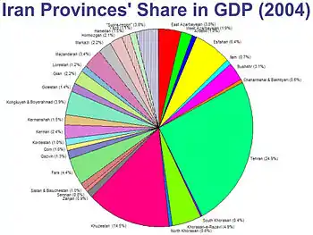 نمودار دایرهای سهم تولید ناخالص داخلی در استانهای ایران