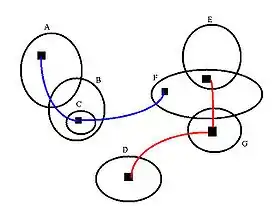 همه حالات ممکنه در A از B و D از G به صورت جداگانه موجودند. مجموعه C فقط به صورت زیر مجموعه B موجود است. معمولاً در نمودارهای پیچیده singleton set و/یا ترکیبها ممکن است با دیگر ترکیبها نمایش داده شود. دو نمودار عنکبوتی در مثال مرتبط با منطق زیر چنین بیان میشود: