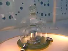 نمونه عینی (کپی) از واحد جرم که در داخل دو شیشه محافظ قرار گرفتهاست.