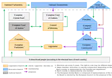 - مشارکتکنندگان ویکیپدیا. «Institutions of the European Union». در دانشنامهٔ ویکیپدیای انگلیسی، بازبینیشده در ۱۲ آوریل ۲۰۱۸.