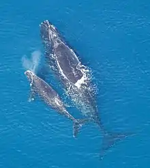 نهنگها بهطور کامل در آب زندگی میکنند؛ به این معنی که از تولد تا بلوغ کامل آنها در آب میگذرد. از این رو، روش زندگی آنها با جانوران نیمه آبزی کاملاً متفاوت است؛ چون آنها نمیتوانند نوزاد خود را در خشکی به دنیا آورند. نوزاد نهنگ از طرف دم به دنیا میآید تا در طی فرایند زایمان یا پس از آن غرق نشود. نهنگ مادر باید شیر را به شکل یک جت (مانند سُرنگ) به دهان نوزاد برساند. نوزاد نهنگ یازده ماه از شیر مادر تغذیه میکند. این شیر سرشار از چربی است تا چربی مورد نیاز بدن نوزاد برای پوشاندن سطح بدنش را تأمین کند. چربی این شیر آنقدر زیاد است که غلظت آن مانند خمیردندان است.[72] هر نهنگ ماده نزدیک به یک سال دورهٔ بارداری دارد و هر بار تنها یک نوزاد به دنیا میآورد. هر نوزاد بسته به گونه، یک تا دو سال به مادر خود وابسته است و دورهٔ بلوغ آن ۷ تا ۱۰ سال طول میکشد.[73] این روش تولید مثل و داشتن تعداد فرزند کم باعث میشود تا احتمال به ثمر رسیدن هر نوزاد بالا رود. مادهها مسئولیت کامل بزرگ کردن نوزاد را بر دوش میکشند در حالی که هیچ باری بر نرها وارد نمیشود. بعضی نهنگها در هنگام نگهداری از بچهها نیاز دارند تا برای تغذیه به ژرفای دریا بروند. در این هنگام، دیگر نهنگهای گروه از بچهها مراقبت میکنند و به عبارتی «پرستاری بچه» میکنند.[74]