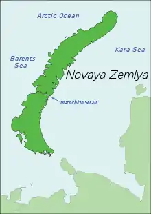 - Wikipedia contributors, "Novaya Zemlya," Wikipedia, The Free Encyclopedia, http://en.wikipedia.org/w/index.php?title=Novaya_Zemlya&oldid=365364235 (accessed July 7, 2010).