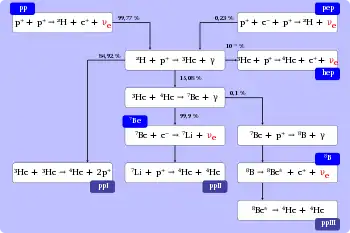 سهم اصلی از طریق واکنش پروتون و پروتون حاصل میشود. واکنش این است: