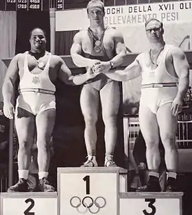 ![]() James Bradford، یوری ولاسوف و Norbert Schemansky at the 1960 Olympics | ||||||||||||||||||||||||||||||||||||||||||||||