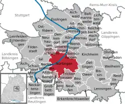 موقعیت Nürtingen در منطقه Esslingen ![]() | |