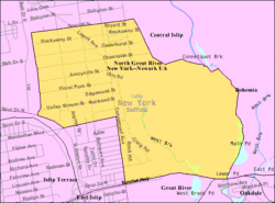 - مشارکتکنندگان ویکیپدیا. «North Great River, New York». در دانشنامهٔ ویکیپدیای انگلیسی.