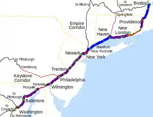 | مالک | ماساچوست (ماساچوست/رود آیلند مرز) Amtrak (بوستون–ماساچوست مرز–نیوهیون، کنتیکت) Connecticut Department of Transportation (مرز نیوهیون/ایالت نیویورک ) مترو-راهآهن شمال (نیویورک مرز–نیو راشل، نیویورک) Amtrak (نیو راشل–واشینگتن، دی.سی.) |