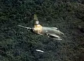 یک فروند اف-۱۰۰دی در حال پرتاب بمب ناپالم در نزدیکی بینهوا.