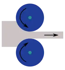 نورد تخت ابتدایی ترین شکل نورد است که مواد اولیه و انتهایی آن مقطع مستطیل دارد. مواد از بین دو غلتک، به نام رول های کار ، عبور داده می شود که در جهت مخالف چرخانده می شوند. شکاف بین دو رول کمتر از ضخامت ماده اولیه است که باعث تغییر شکل آن می شود . کاهش ضخامت مواد باعث کشیده شدن مواد می شود. اصطکاک در رابط بین مواد و رول باعث می شود که مواد به تحت فشار قرار دادند. مقدار تغییر شکل ممکن در یک عبور با اصطکاک بین رول ها محدود می شود. اگر تغییر ضخامت خیلی زیاد باشد ، رولها فقط روی مواد می لغزند و آنها را به داخل نمی کشانند.[16]