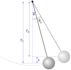 که در آن بیشینه زاویهای است که آونگ به آن میرسد. دوره تناوب، زمان لازم برای یک نوسان، از حاصلضرب تقسیم بر آرگومان کسینوس که در اینجا است به دست میآید؛ پس خواهیم داشت: