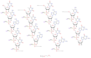 all-P-ambo-2’-O-(2-Methoxyethyl)-5-methyl-P-thiouridylyl-(3’→5’)-2’-O-(2-methoxyethyl)-5-methyl-P-thiocytidylyl-(3’→5’)-2’-O-(2-methoxyethyl)-P-thioadenylyl-(3’→5’)-2’-O-(2-methoxyethyl)-5-methyl-P-thiocytidylyl-(3’→5’)-2’-O-(2-methoxyethyl)-5-methyl-P-thiouridylyl-(3’→5’)-2’-O-(2-methoxyethyl)-5-methyl-P-thiouridylyl-(3’→5’)-2’-O-(2-methoxyethyl)-5-methyl-P-thiouridylyl-(3’→5’)-2’-O-(2-methoxyethyl)-5-methyl-P-thiocytidylyl-(3’→5’)-2’-O-(2-methoxyethyl)-P-thioadenylyl-(3’→5’)-2’-O-(2-methoxyethyl)-5-methyl-P-thiouridylyl-(3’→5’)-2’-O-(2-methoxyethyl)-P-thioadenylyl-(3’→5’)-2’-O-(2-methoxyethyl)-P-thioadenylyl-(3’→5’)-2’-O-(2-methoxyethyl)-5-methyl-P-thiouridylyl-(3’→5’)-2’-O-(2-methoxyethyl)-P-thioguanylyl-(3’→5’)-2’-O-(2-methoxyethyl)-5-methyl-P-thiocytidylyl-(3’→5’)-2’-O-(2-methoxyethyl)-5-methyl-P-thiouridylyl-(3’→5’)-2’-O-(2-methoxyethyl)-P-thioguanylyl-(3’→5’)-2’-O-(2-methoxyethyl)guanosine[1] | |