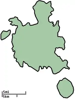 | • کل | ۳۲۵ کیلومتر مربع (۱۳۰ مایل مربع) |