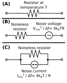 این سه مدار با هم برابرند: (A)یک مقاومت در دمای غیر صفر که دارای نویز جانسن است؛ (B) یک مقاومت بدون نویز که با یک منبع ولتاژ نویززا سری شده است.(یعنی یک مدار معادل تونن)؛ (C) یک مقاومت بدون نویز که با یک منبع جریان نویززا موازی شده است.(یعنی مدار معادل نورتون)