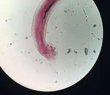 ۲. خروج لارو در مدت ۴۸–۲۴ ساعت از تخم (لارو رابدیتوئید)
