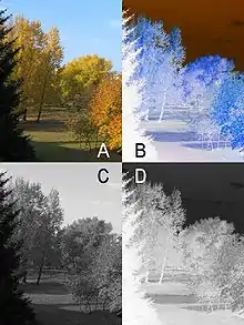 Color positive picture (A) and negative (B), monochrome positive picture (C) and negative (D)