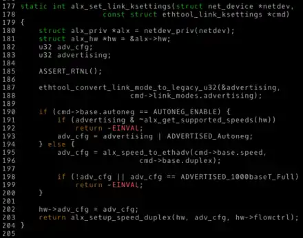 Piece of code from a module of the هسته لینوکس، which uses snake case for identifiers.