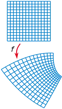 یک شبکهٔ مستطیلی و تصویر آن تحت نگاشت. توجه کنید که در این نگاشت زاویههای بین خطوط حفظ شدهاند.