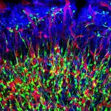نیایاختههای عصبی (سبز) و اختریاختهها (آبی)