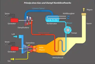با ترکیب سیکلهای گازی و بخار به درجه حرارتهای زیاد ورودی و درجه حرارت کم خروجی میتوان دست یافت. به دلیل اینکه این سیکلها توسط یک منبع سوخت تغذیه میشوند راندمان آنها افزایش مییابد. بنابراین یک نیروگاه سیکل ترکیبی دارای یک سیکل ترمودینامیک است که بین درجه حرارت احتراق بالای توربین گازی و درجه حرارت تلف شده از کندانسورهای سیکل بخار عمل میکند. در صورتی که نیروگاه سیکل ترکیبی فقط برق تولید کند، راندمان آن تا 60 درصد خواهد رسید و در صورتی که تولید برق همراه با مصرف حرارت باشد، راندمان آن تا 85 درصد افزایش خواهد یافت. [1]