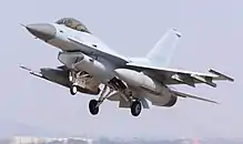A F-16 Fighting Falcon on take off