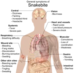 - MedlinePlus - Snake bites From Tintinalli JE, Kelen GD, Stapcynski JS, eds. Emergency Medicine: A Comprehensive Study Guide. 6th ed. New York, NY: McGraw Hill; 2004. Update Date: 2/27/2008. Updated by: Stephen C. Acosta, MD, Department of Emergency Medicine, Portland VA Medical Center, Portland, OR. Review provided by VeriMed Healthcare Network. Also reviewed by David Zieve, MD, MHA, Medical Director, A.D.A.M. , Inc. Retrieved on 19 mars, 2009
