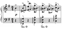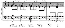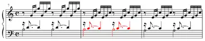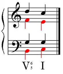 به لحاظ ملودی، از فاصلهٔ دوم کوچک در فرود (از جمله در فرود کاذب) استفاده میشود، چرا که این حس را به شنونده منتقل میکند که به سمت نت بنمایه در حال حرکت است.