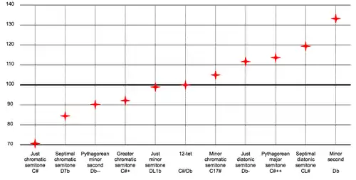 در نظام کوک خالص فاصلهٔ دوم کوچک نسبت ۱۶:۱۵ دارد (حدود ۱۱۱٫۷ سنت) و به آن نیمپردهٔ دیاتونیک خالص هم گفته میشود. (