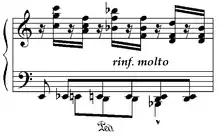 به لحاظ هارمونی همصدای افزوده به ندرت استفاده میشود. در مثال زیر فرانتز لیست یک نت می بمل (E♭) در کنار یک نت می بکار (E♮) قرار دادهاست. در اینجا «می بمل» را به «ر دیز» ترجیح دادهاست تا آن را به عنوان بخشی از («هفت نمایانِ» فا) فرض کنیم و این افزودن به هارمونی بر یک «نت پدال» (می بکار) استوار است.