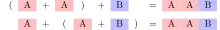 عملیات دوتایی یک نیم-گروه اغلب به صورت ضربی: یا نوشته شده که نتیجه اعمال عمل نیم-گروه به زوج مرتب می باشد. شرکتپذیری را برای تمام درون نیم-گروه به صورت صوری بیان می کنند.