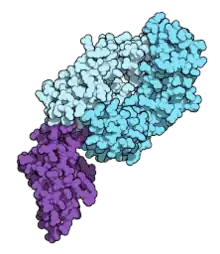 | قطعهٔ Fab پادتن در نیوالیومَـب (آبی) که به دومِـین برونسلولی PD-1 (بنفش) چسبیده است. برگرفته از PDB مدخل 5ggr. | |
