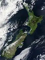 نیوزیلند[11] (به انگلیسی: New Zealand) با نام رسمی قلمرو همسود نیوزیلند (به انگلیسی: Commonwealth of New Zealand) یا زِلاندِنو[12] کشوری در جنوب غربی اقیانوس آرام است، این کشور از دو جزیره بزرگ و تعداد زیادی جزیره کوچک تشکیل شده و مناطق خودمختار نیووی، جزایر کوک، توکلائو و راس را هم در بر میگیرد.