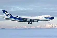 یک فروند بوئینگ ۷۴۷ نیپون کارگو ایرلاینز در حال ترک فرودگاه بینالمللی فرانکفورت، آلمان در سال ۲۰۰۱.