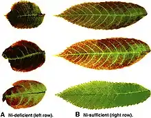 نیکل از جدیدترین عناصر ضروری شناخته شده برای گیاه است. اگرچه نیکل هماکنون به عنوان یک عنصر ضروری بسیار کم مصرف شناخته شدهاست، اما تنها نقش تعریف شده این عنصر، شرکت در سوخت و ساز اوره میباشد که این فرایند در گیاهانی که از اوره به عنوان منبع نیتروژن استفاده میکنند، بسیار حائز اهمیت است. اما در گیاهانی که با ترکیبی به غیر از اوره تغذیه میشوند از اهمیت چندانی برخوردار نیست.[9] کمبود نیکل در گیاهان عالی، فعالیت آنزیم اوره آز را کم میکند. اختلال در ساخت پروتئینها وکاهش غلظت نیتروژن کل گیاه در شرایط کمبود نیکل گزارش شدهاست.[10]