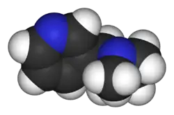 نیکوتین یک ترکیب آلی نیتروژندار است که بیشتر در گیاهانی مانند تنباکو و در اندازههای کمتر در گوجهفرنگی، سیبزمینی، بادمجان و فلفلسبز یافت میشود. ۰٫۳ تا ۵ درصد گیاه خشک تنباکو را نیکوتین میسازد و یک زهر اثرگذار بر سامانه عصبی است که در بسیاری از حشرهکشها به کار میرود. نیکوتین در اندازههای کمتر، یک ماده انگیزنده (محرک زیستی) اعتیادآور و عامل بسیاری از ویژگیهای روانی دود تنباکو است.