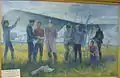 دانشمند روسی نیکولای ژوکوفسکی با دانش آموزانش، بخشی از نقاشی تاتیانا اوژنژینا ایوانوا، موزه موسسه حمل و نقل هوایی مسکو