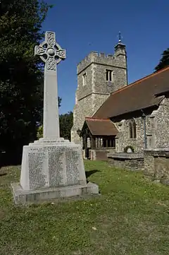 ![]() The Grade I Listed parish church is the oldest of the listed buildings in Harlington. The War Memorial was designed by C. O. Scott. | |