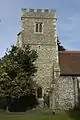 West end and tower of church of S. Peter & S. Paul, Harlington, 2014. Fifteenth century, restored c. 1880 by John Oldrid Scott.