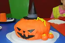 ![]() یک کدوی هالووین، یکی از نمادهای هالووین | |