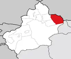 ![]() نقشه منطقه خودمختار سینکیانگ اویغور و موقعیت استان قومول | |