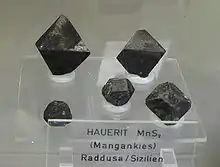 هاوئریت (به انگلیسی: Hauerite) با فرمول شیمیایی MnS2 از مجموعه کانی هاست و از نام زمینشناس اتریشی J.R.Hauer اخذ شدهاست. در اسید کلریدریک حل شونده و ذوب شوندهاست. Mn:۴۶٫۱۴٪ S:۵۳٫۸۶٪ برای اولین بار در چک اسلواکی کشف شد و از نظر شکل بلور: اکتائدر - دودکائدر، رنگ: خاکستری - قهوهای -قهوهای تیره، شفافیت: کدر(اپاک)، شکستگی: نیمه صدفی - نامنظم، جلا: الماسی - نیمه فلزی، رخ: کامل، سیستم تبلور: مکعبی و در ردهبندی سولفور است همچنین خاصیت مغناطیسی ندارد. و منشأ تشکیل آن رسوبی - گازهای ماگمائی - آتشفشانی است.