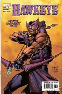 ![]() جلد شاهین چشم جلد ۳، شماره ۵ام، توسط کارلو پاچکو و جیسس مرینو | |