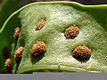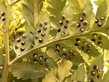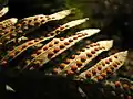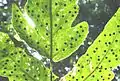هر کدام از نقطههای سیاه در زیر برگ این سرخس، یک هاگینه است.
