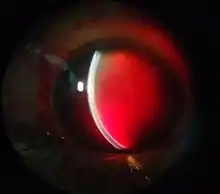 Sheppard, John D. "Hyphema". WebMD, LLC. Medscape. Retrieved 29 November 2012. Walton, William; Von Hagen, Stanley; Grigorian, Ruben; Zarbin, Marco (July–August 2002). "Management of Traumatic Hyphema". Survey of Ophthalmology. 47 (4): 297–334. PMID 12161209. doi:10.1016/S0039-6257(02)00317-X. Retrieved 29 November 2012. Crawford, JS; Lewandowski, RL; Chan, W (September 1975). "The effect of aspirin on rebleeding in traumatic hyphema.". American journal of ophthalmology. 80 (3 Pt 2): 543–5. PMID 1163602. Recchia, Franco M.; Aaberg Jr., Thomas; Sternberg Jr., Paul (2006-01-01). Hinton, David R.; Schachat, Andrew P.; Wilkinson, C. P., eds. Chapter 140 - Trauma: Principles and Techniques of Treatment A2 - Ryan, Stephen J. Edinburgh: Mosby. pp. 2379–2401. ISBN 9780323025980. doi:10.1016/b978-0-323-02598-0.50146-4. Gharaibeh, Almutez; Savage, Howard I.; Scherer, Roberta W.; Goldberg, Morton F.; Lindsley, Kristina (2013-12-03). "Medical interventions for traumatic hyphema". The Cochrane Database of Systematic Reviews (12): CD005431. ISSN 1469-493X. PMC 4268787 . PMID 24302299. doi:10.1002/14651858.CD005431.pub3.