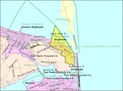 ![]() Map of Highlands in Monmouth County. Inset: Location of Monmouth County in New Jersey. | |